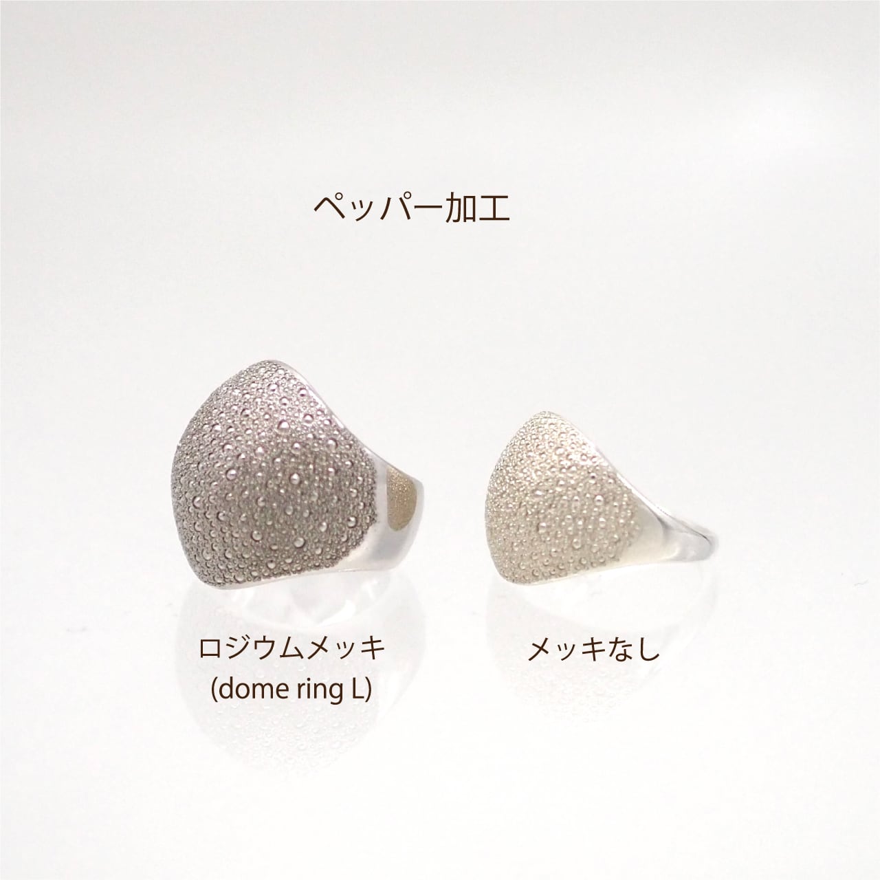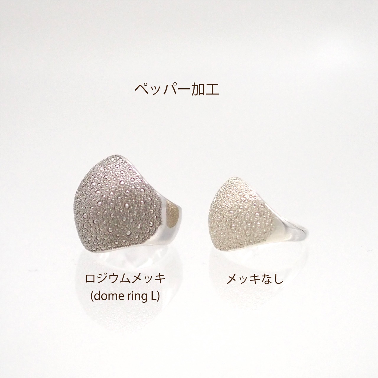 ・ロジウムメッキ(銀色)はかけることにより素材の変色を軽減し、銀色の深みが出ます。
